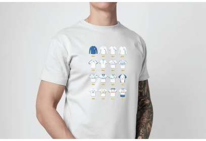 Relive the golden moments of football history with this exclusive t-shirt showcasing a collection of retro Tottenham Hotspur FC football kits from over the years.