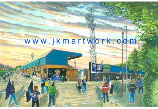 Capture the electric atmosphere of Spotland Stadium with this stunning art print celebrating the historic home of Rochdale Football Club. This premium artwork masterfully portrays the grandeur of match day through sophisticated Giclée printing on professional 260gsm photographic paper. The vibrant scene depicts the stadium filled with passionate supporters, all set against a magnificent sunset sky. Every architectural detail is meticulously rendered, from the impressive floodlights to the sweeping stadium structure, creating an authentic representation of this cherished sporting venue. The premium matte finish and UV-stable inks ensure exceptional colour vibrancy and longevity, while minimising glare. Produced using advanced Giclée printing technology, this contemporary piece delivers gallery-grade quality that brings the stadium's majesty to life. The print arrives unframed in a protective flat mailer, ready for custom framing. Whether displayed in a living room, office, or games room, this striking artwork offers an impressive focal point that celebrates the Dale's rich Football heritage.